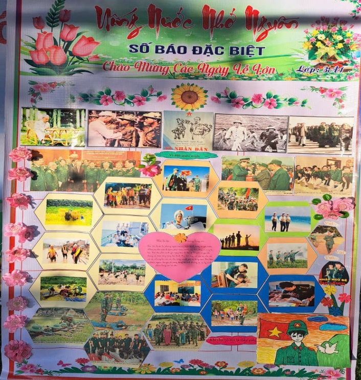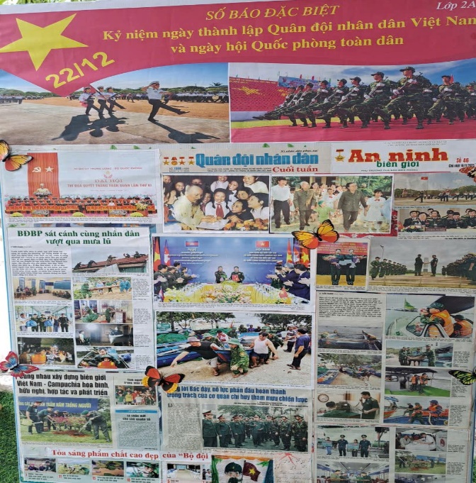 Các lớp tham gia làm báo tường báo ảnh về ngày TLQĐNDVN và ngày hội QPTD