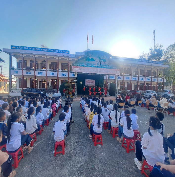 Đội xung kích của trường biểu diễn các tiết mục văn nghệ